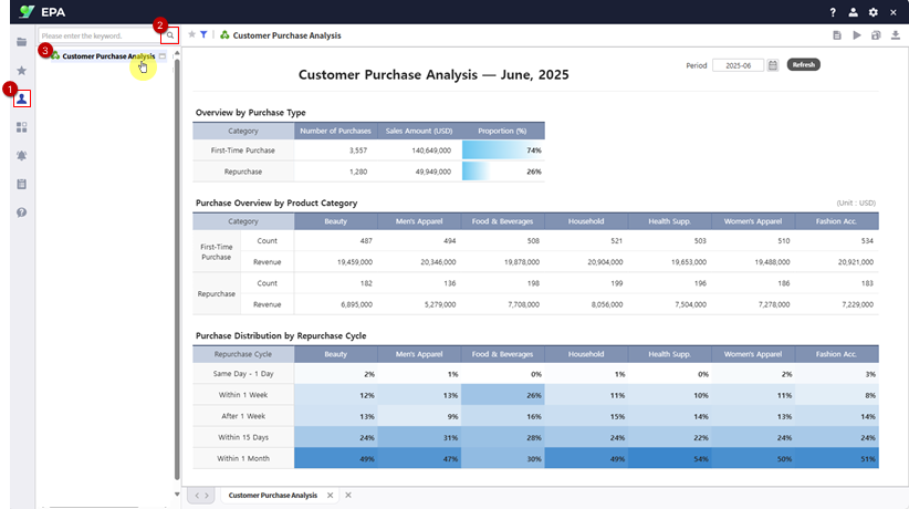 - [Data Derivation Method] We will calculate the ‘Purchase Cycle’, necessary for V sheet, using the ‘Repurchase Interval’ values.