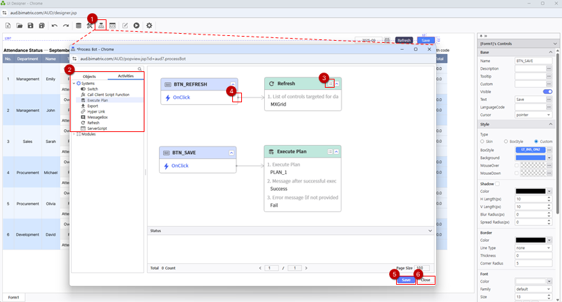 'Refresh' : BTN_REFRESH Use Process Bot to assign actions to the buttons.