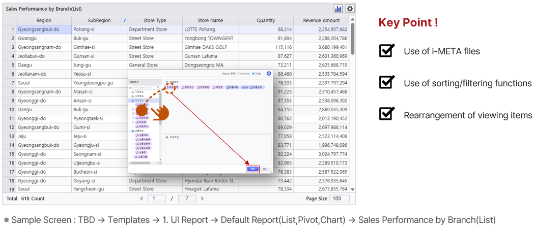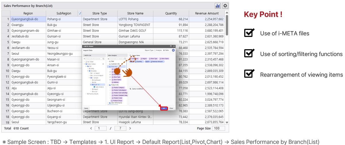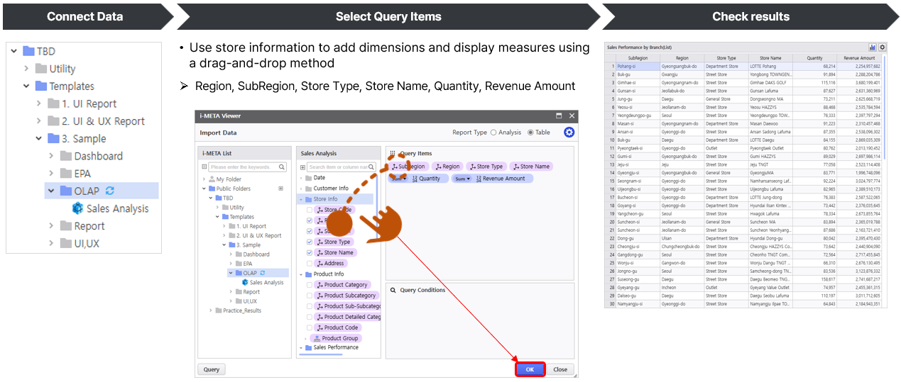 Let's create a query screen using items such as store region, store type, and sales quantity/amount.