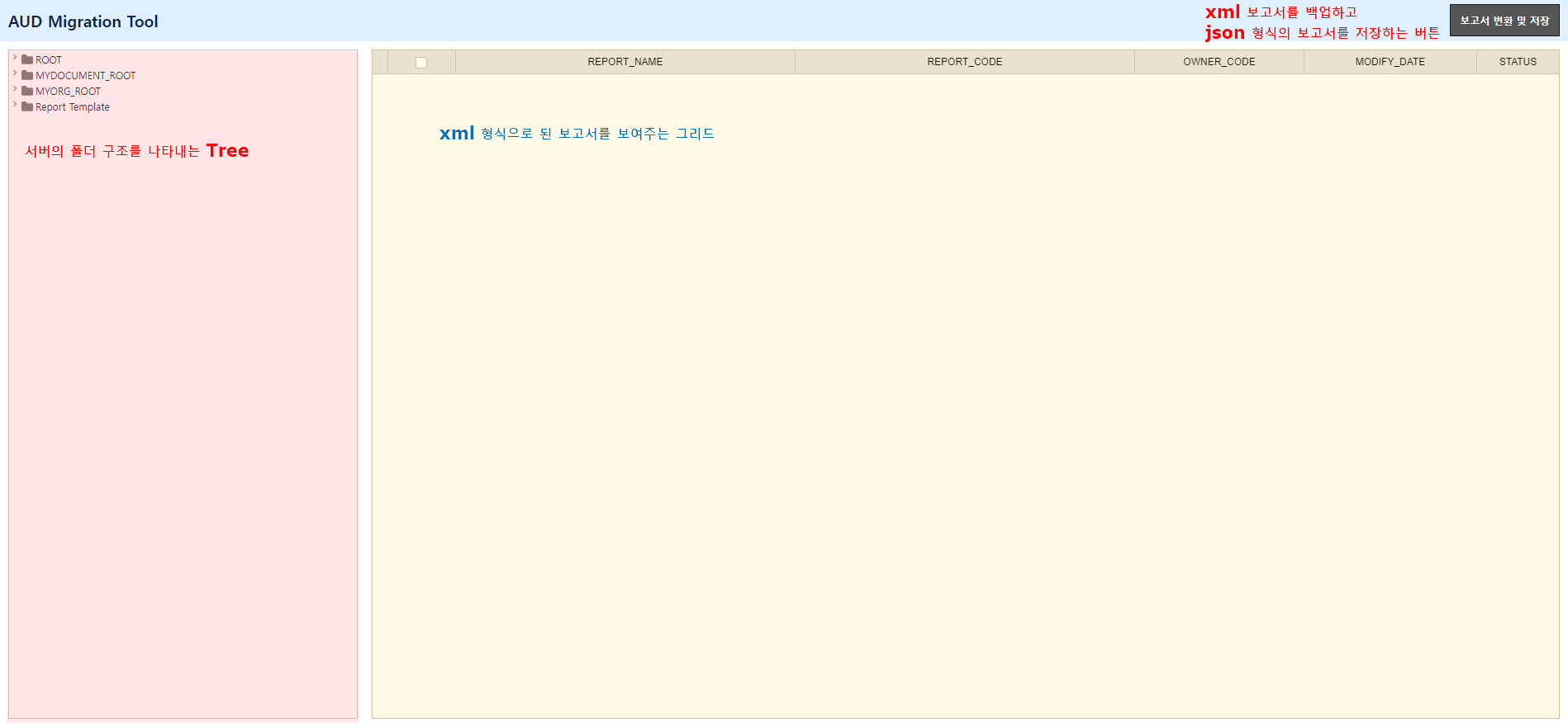 - 기존의 XML 형식의 보고서는 서버에 백업됩니다. ( ex. REP112233.mtsd.MIGRATION )