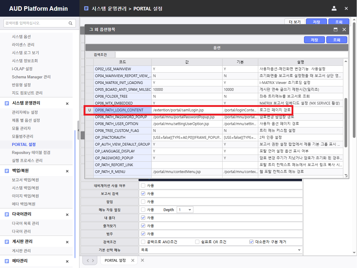 > OP06_PATH_LOGIN_CONTENT = /extention/portal/samlLogin.jsp 로 변경