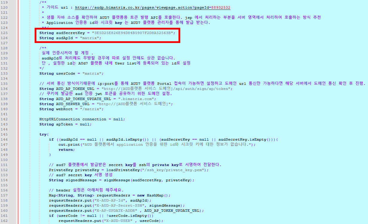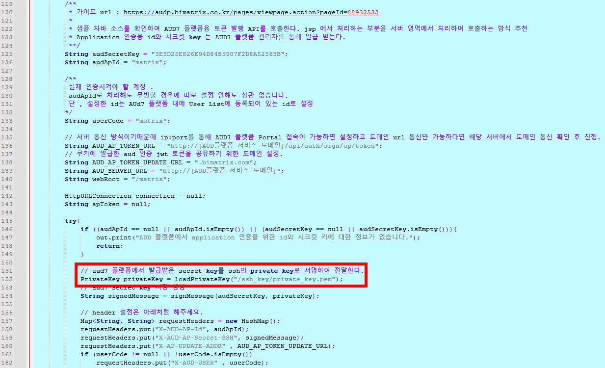> SSH Key정보를 sitePortalAUD7EmSample.jsp에 설정