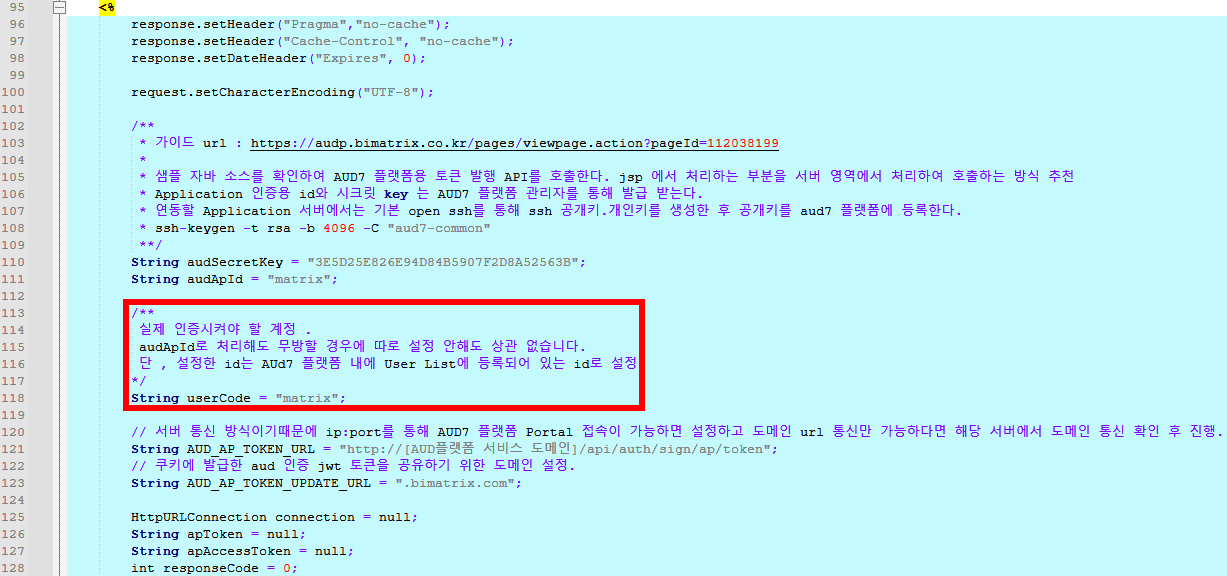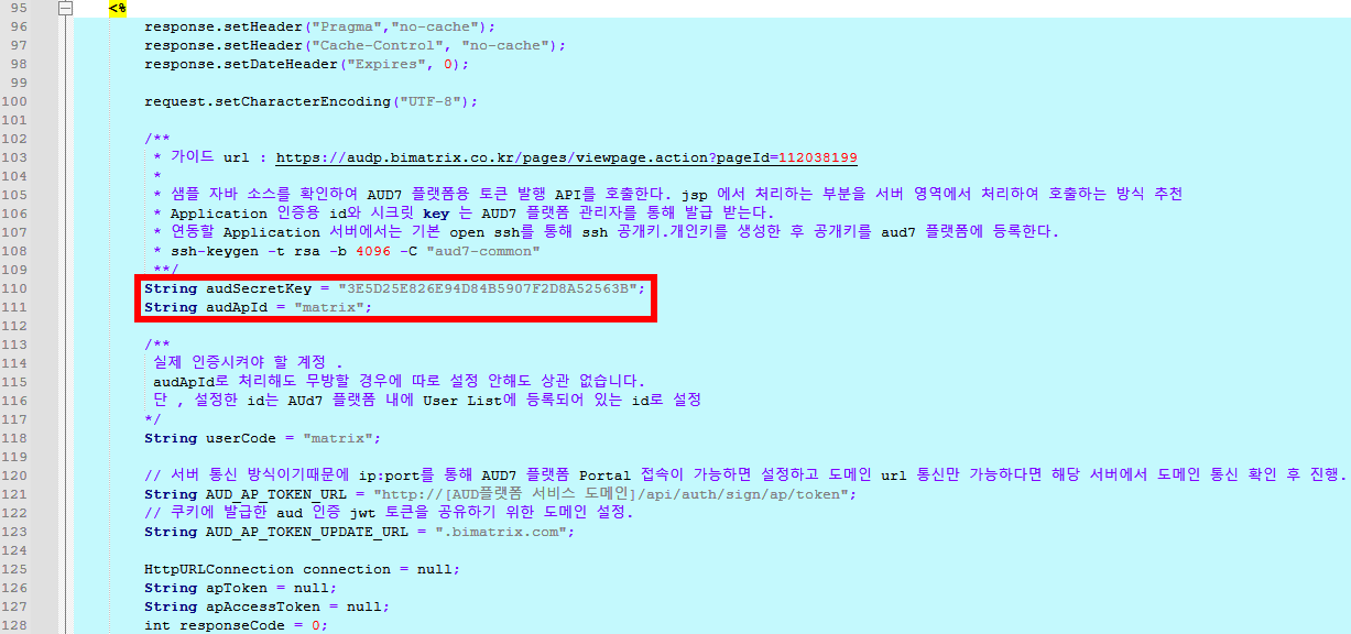 1-1-1) audSecretKey, audApId 설정