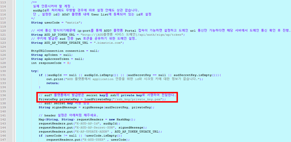 > SSH Key정보를 sitePortalAUD7EmSample.jsp에 설정