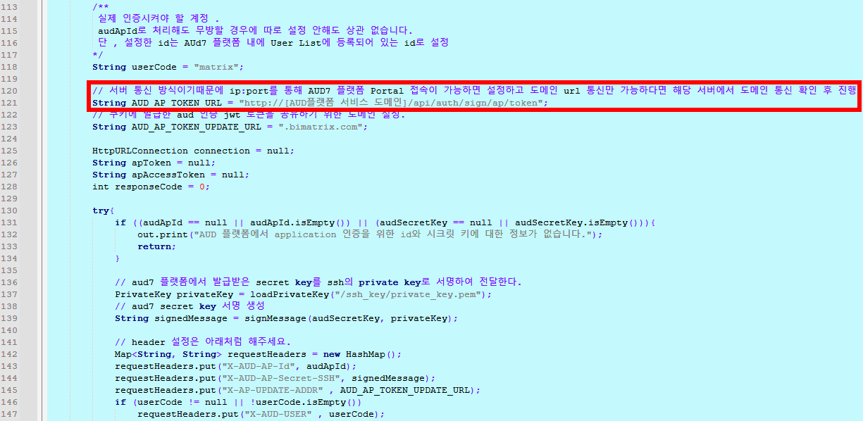 > AUD플랫폼 경로 설정 (Ex. "http(s)://[IP:PORT]/api/auth/sign/ap/token")