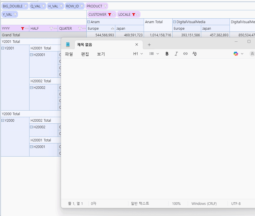OlapGrid 데이터 조회 후 특정 영역 선택 후 복사 시 선택된 셀의 모든 텍스트를 복사하던 것을 중복 없이 복사 / 붙여넣기 되도록 개선하였습니다.