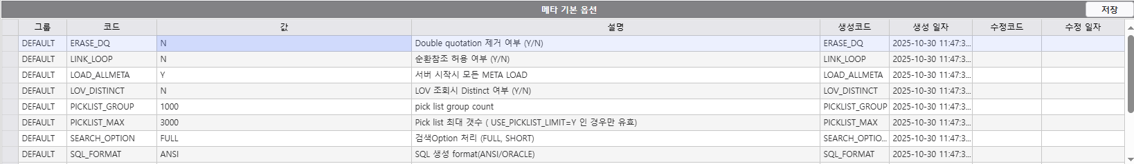 2. 메타 공통옵션 : DB Connection별 Meta의 옵션이없을때 사용하는 기본옵션