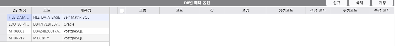 3. DB 별 메타옵션 : DB Connectino별 메타옵션을 설정한다. 메타 공통옵션보다 우선순위가 더 높음 .