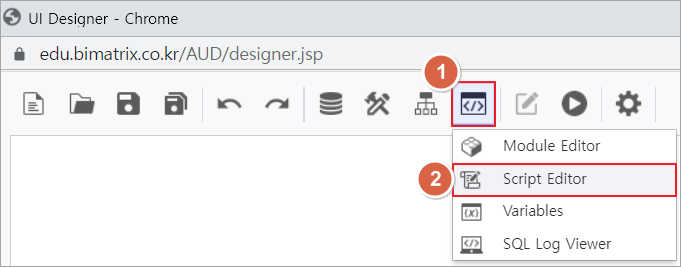 1. 컨트롤 그룹에서 편집 그룹 → Script Editor 메뉴를 선택합니다.