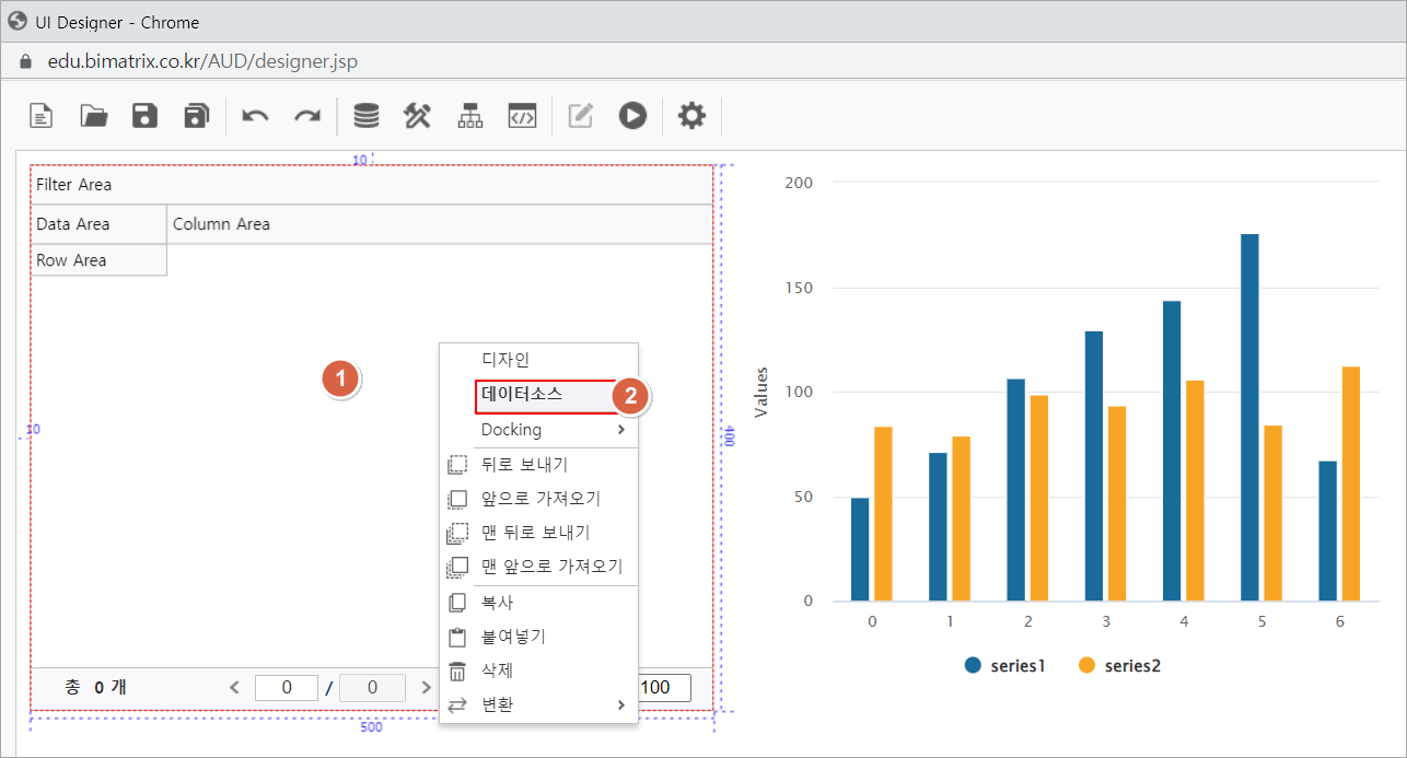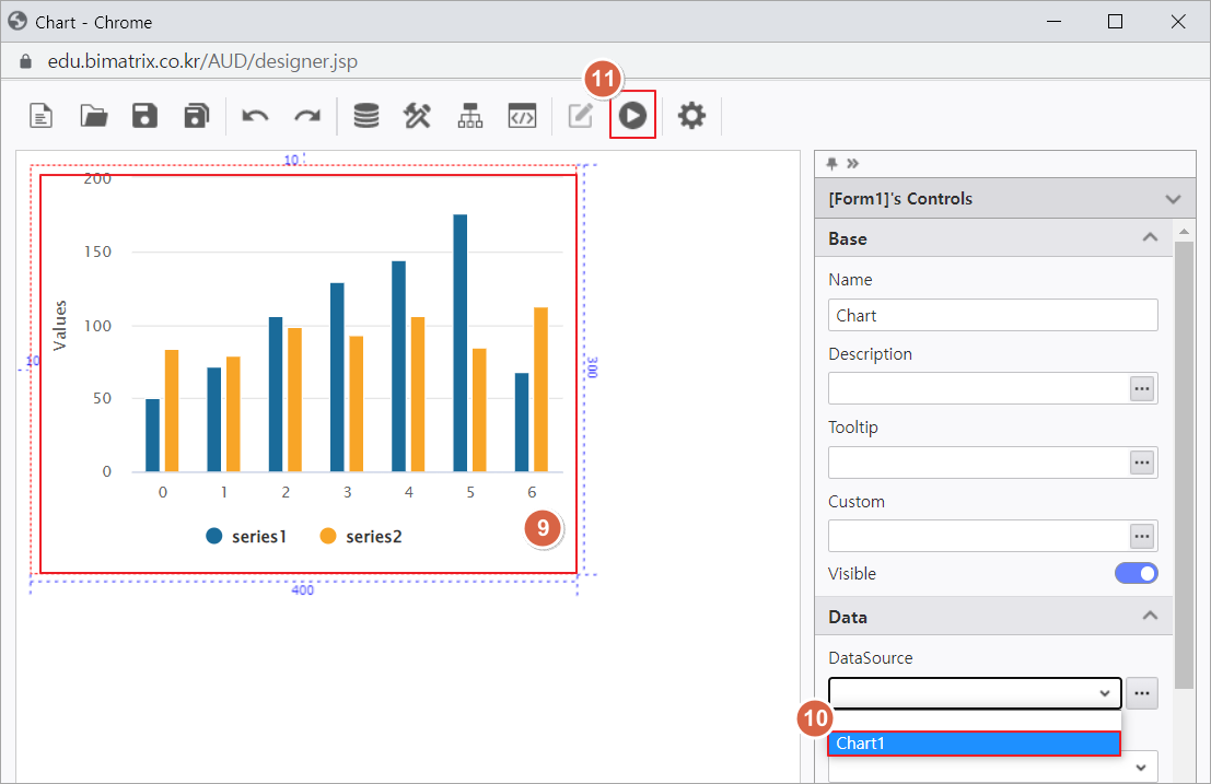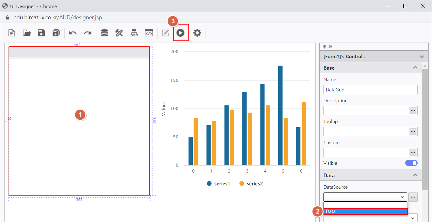 2. Chart 컨트롤에 DataSource가 연동된 것을 확인할 수 있습니다.
