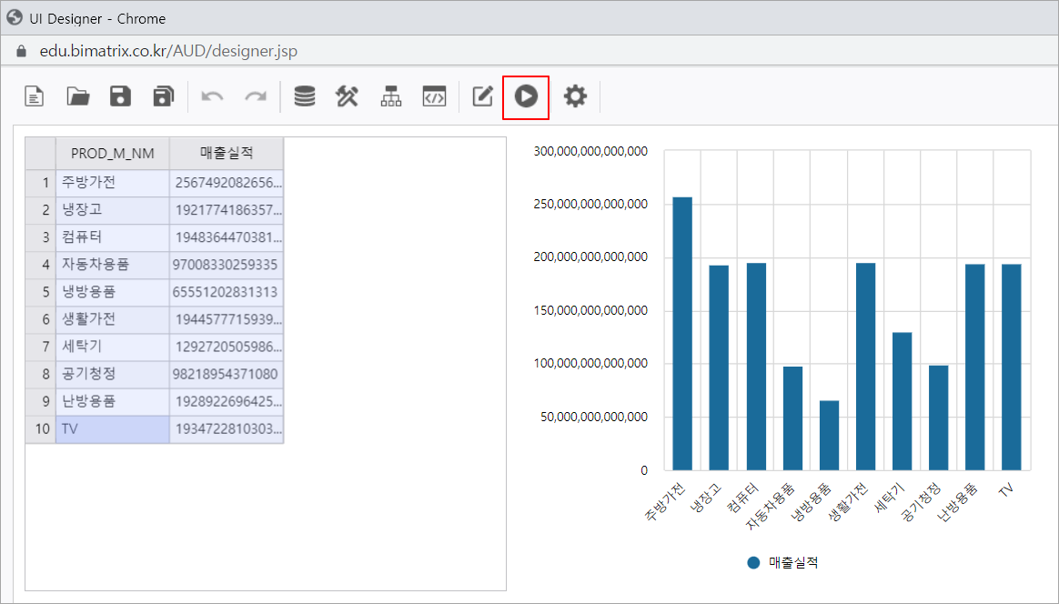 데이터 바인딩이 설정되었으면 실행 버튼을 클릭합니다.