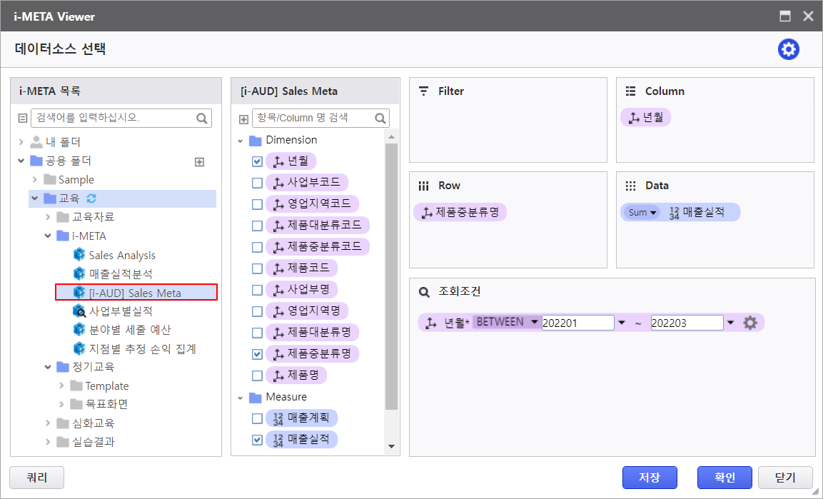 3. 실행 버튼을 클릭하여 Olap-Grid에 데이터가 출력되는 것을 확인합니다.