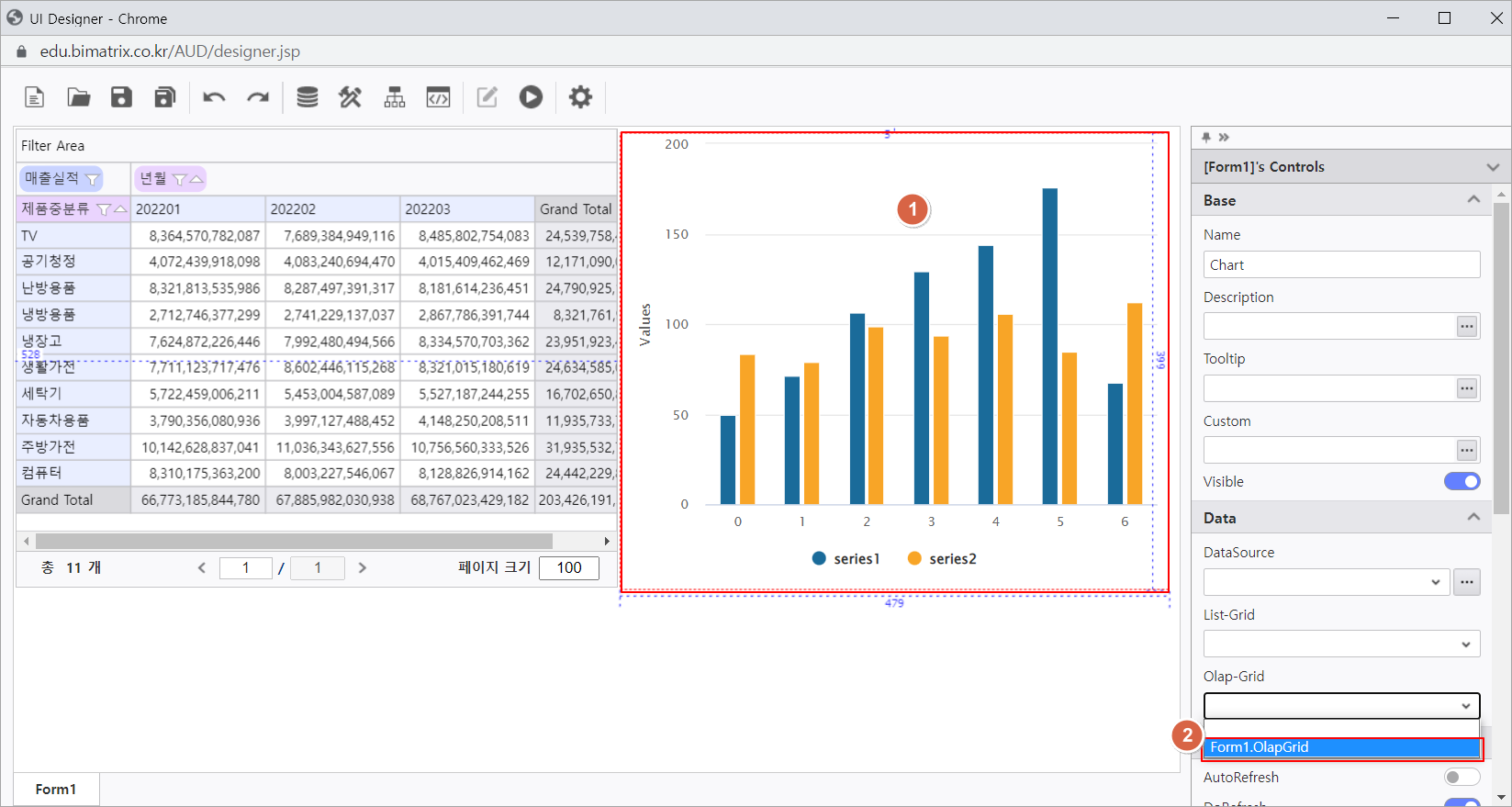 1. Chart와 Olap-Grid 컨트롤 생성하기