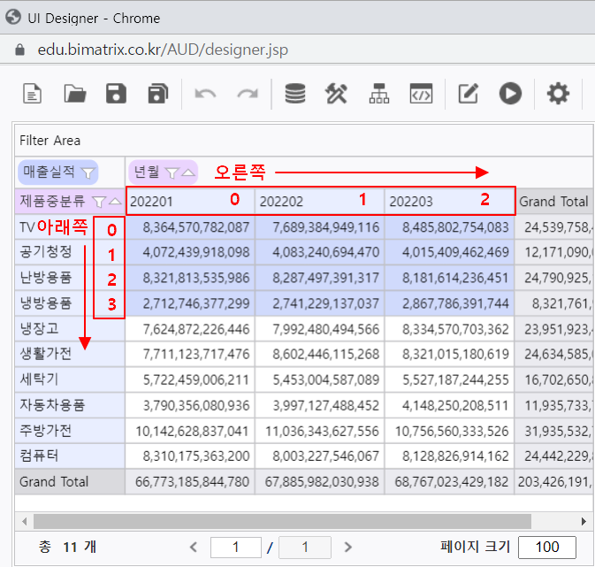 < Row 단위의 시작은 1이 아닌 0부터 시작됩니다.