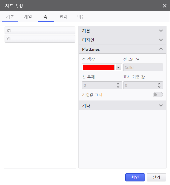 표시 기준 값 | Y축 기준선을 표시할 값 설정 | |