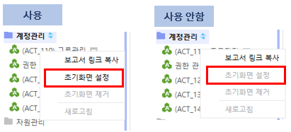 제품의 메인 포탈의 좌측 트리 메뉴를 보고서로 조회하도록 설정 할 수 있는 옵션