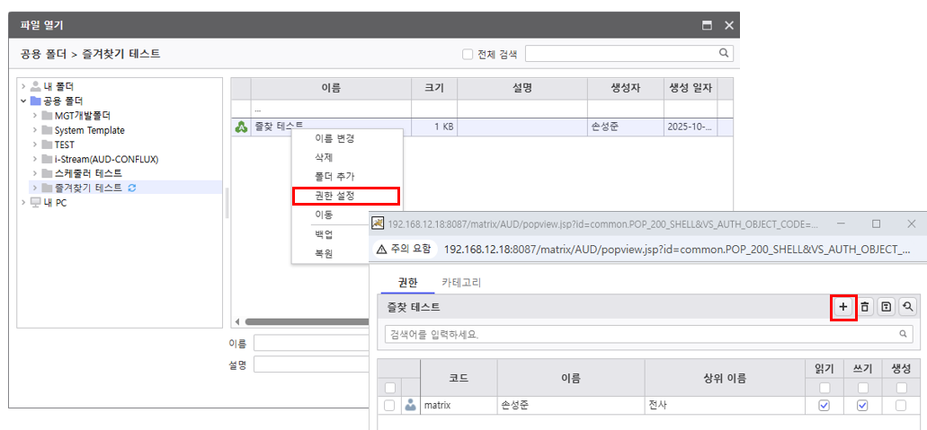 사용자가 Development 그룹에 포함 여부와 상관 없이 i-AUD 개발자 권한 소유