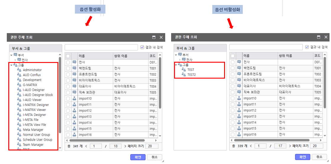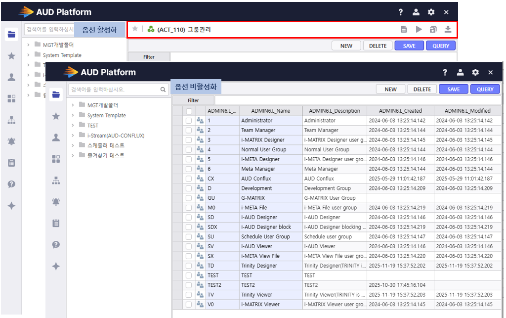 사용자가 Development 그룹에 포함되지 않으면 i-AUD 개발자 권한이 부여되지 않음 - 0 : 사용 안 함