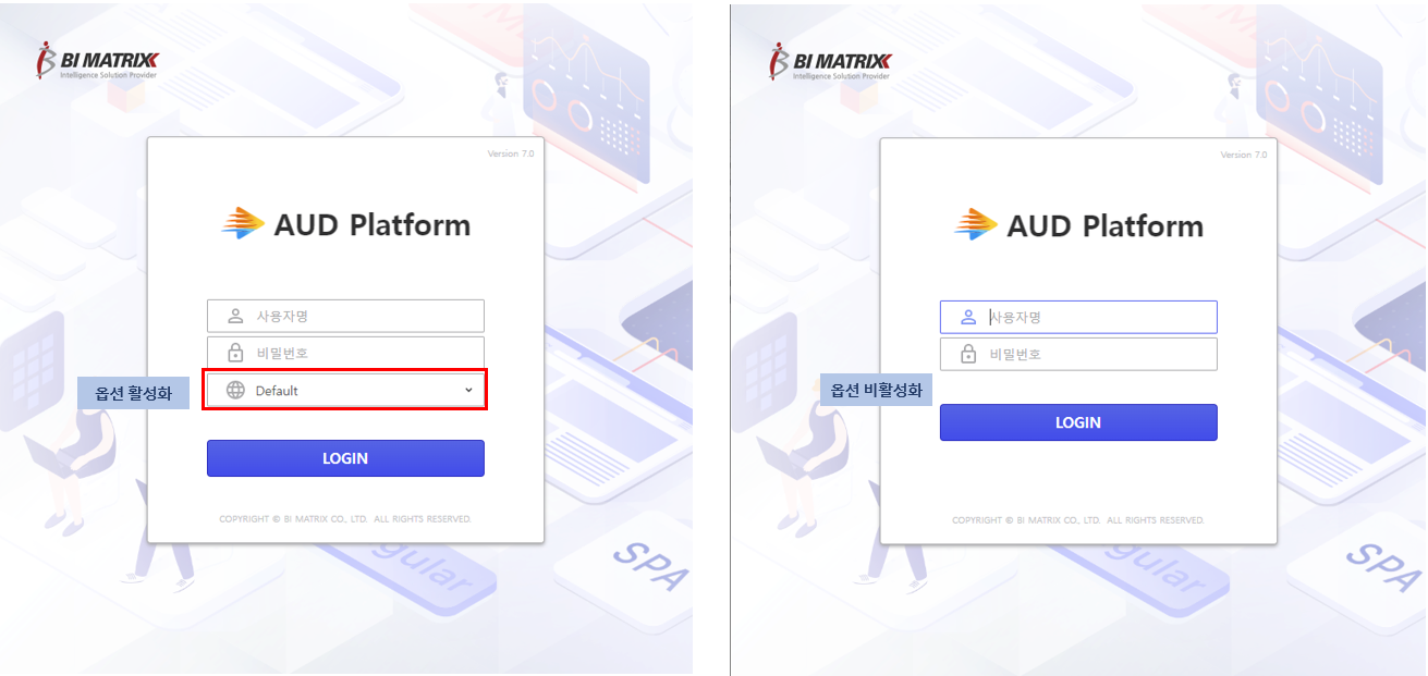 - AUD Platform Login : 기본 설정 값 (Default)