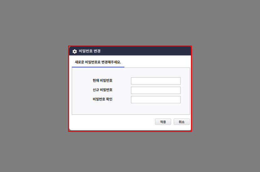 제품의 비밀번호 변경 조건에 도달했을 경우 나타나는 암호 변경 팝업 창의 경로를 설정 할 수 있는 옵션