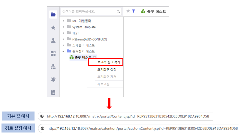포탈 트리 컨텍스트 메뉴에서 보고서 링크 복사 시 사용할 주소
