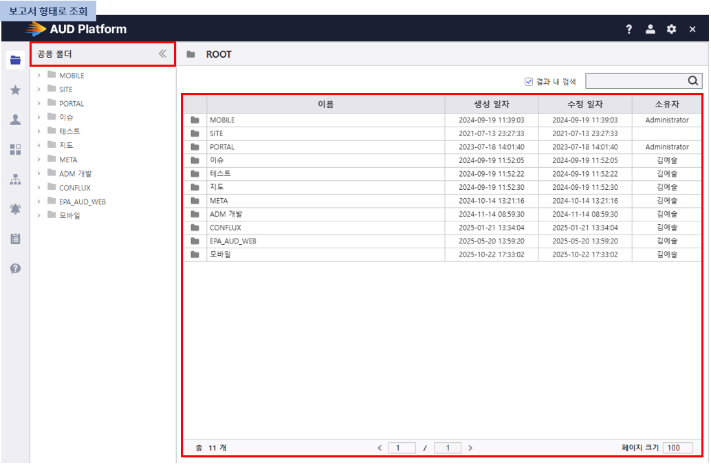 PORTAL 좌측 목록의 정렬 순서 설정 (보고서명 / 생성일자 / 수정일자)