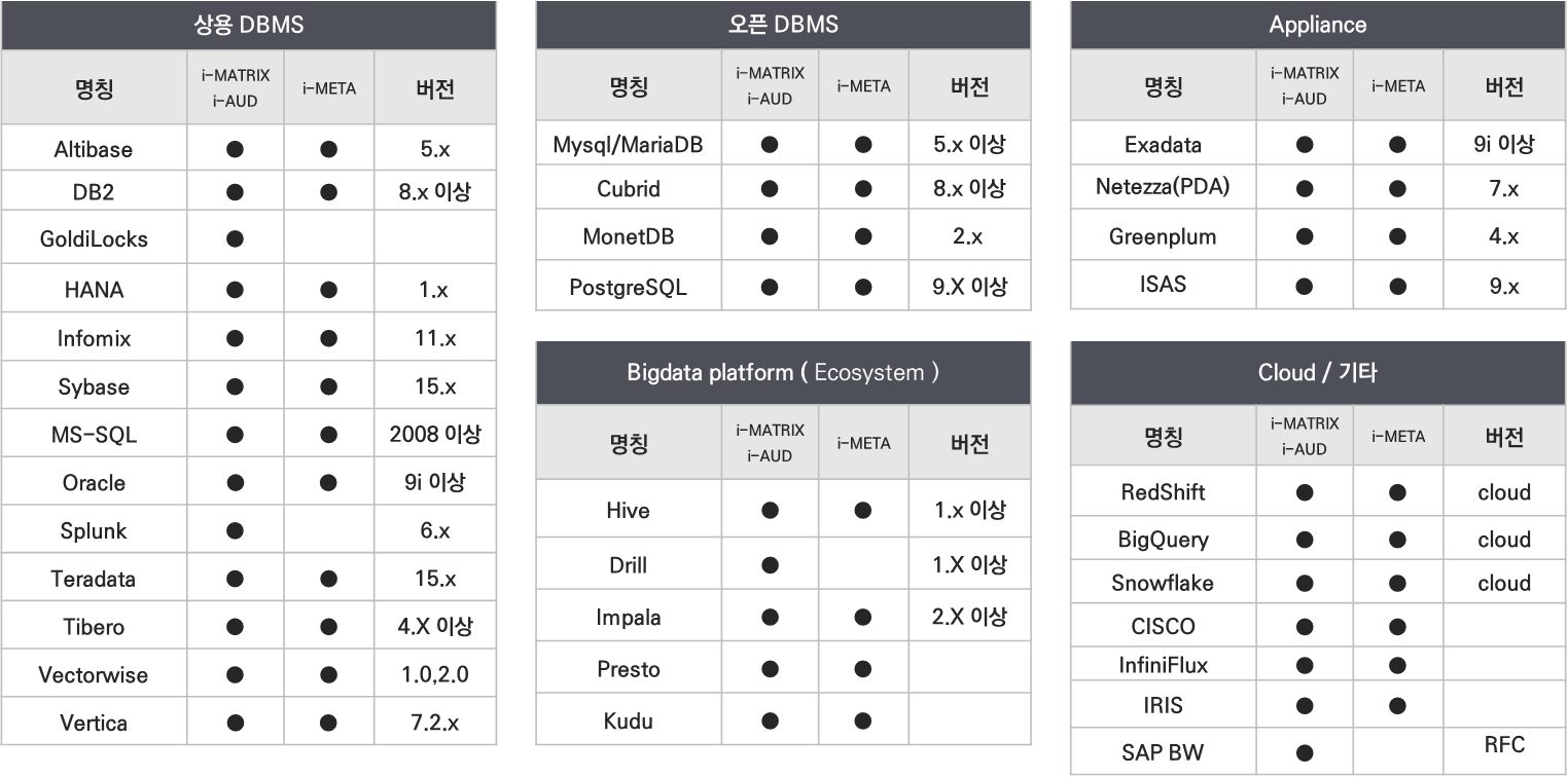 1.4 지원 가능 DBMS (고객사 업무용 DB)