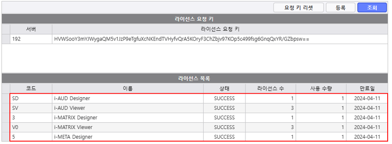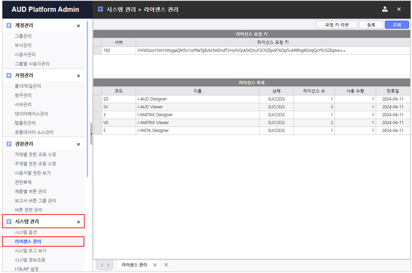 3.등록이 완료되면 라이선스 목록에 유저 수와 유효기간을 확인하고 라이선스가 정상 작동하는지 확인합니다.