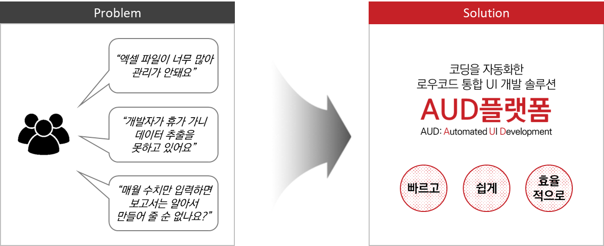 AUD플랫폼에서는 비개발자도 다양한 업무시스템을 사용자 개개인에 맞춰 쉽게 구현할 수 있습니다.
