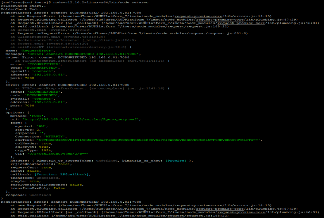 - node-v12.16.2-linux-x64/bin/node metasvc 로 메타서버 기동 했는데 AUD Server에