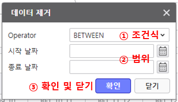 확인 및 닫기 버튼