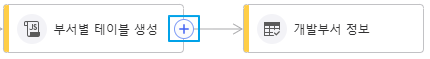 Step 1. DataTable 형태의 산출물이 존재하는 스크립트 노드와 연결 - 산출물이 있는 스크립트 노드에 커서를 올려 + 기호가 나타나면 Drag & Drop으로 DataTable 노드와 연결합니다