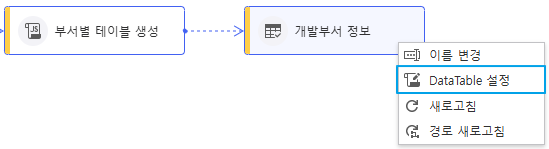 Step 2. DataTable 설정 - DataTable 노드 우클릭 후 DataTable 설정을 선택합니다.