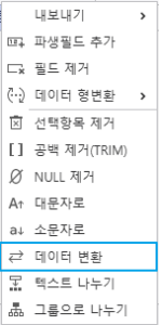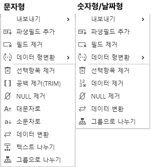 | 설정 | 노드의 데이터 조회 및 전처리 할 수 있습니다. | 아래 노드에는 해당 메뉴가 표시되지 않습니다.