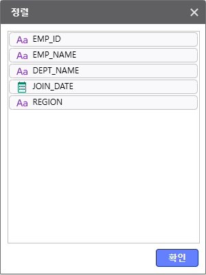 | ④ 출력 순서 | 아이콘을 클릭하여 컬럼의 출력 순서를 조정할 수 있습니다. 최종 결과 테이블에서 컬럼이 표시되는 순서에 영향을 줍니다. |
