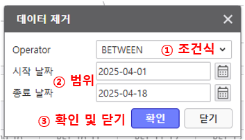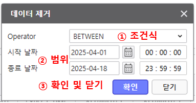 ② 확인 및 닫기 버튼 - 확인 버튼 클릭 시 설정 내용이 반영됩니다.