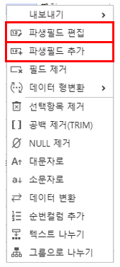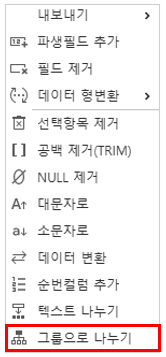 - 데이터 미리 보기 를 통해 선택된 데이터 기준으로 다양한 매크로를 이용하여 데이터 정제가 가능합니다.